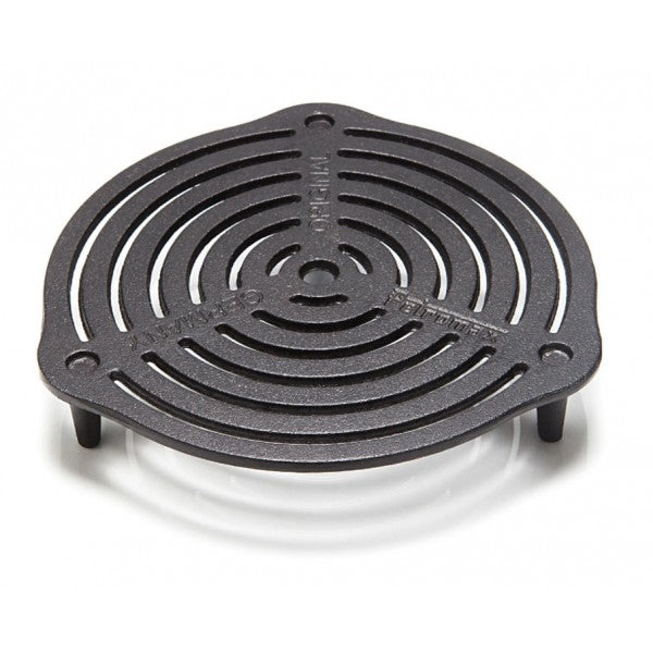 To steam in the Dutch Oven, place one rack in it or simply stack several racks on top of each other. If you place the grill directly into the hot coals, it will quickly sear the perfect grill marks on meat or vegetables. Thanks to the feet on the bottom, the cast iron stacking grate is stable in the fire and can be used as a support for placing percolators, tea kettles or Dutch ovens without legs in the fire. It can also serve as a practical coaster for hot cookware on the table.