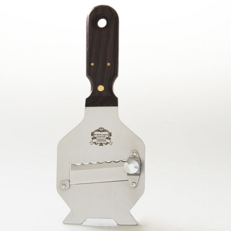 This beautiful truffle slicer is made of stainless steel and the handle is made of exotic dark wood. The plane is adjustable between 0.2 and 3 mm and is razor sharp. Perfect for slicing fresh truffles.
