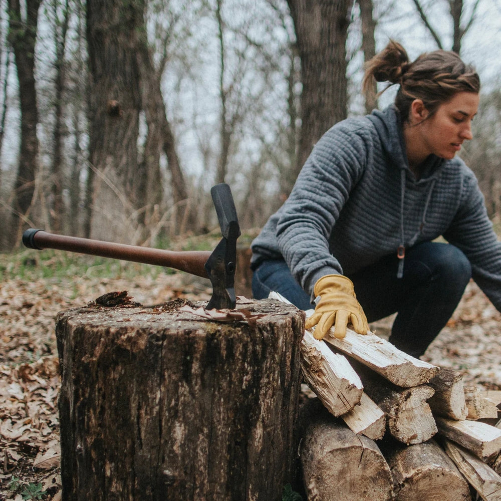Multi inzetbare scherpe bijl. Praktisch voor in de tuin om vaste grond om te woelen en/of wortelresten te verwijderen. Maar ook om hout te hakken voor je kampvuur / grill