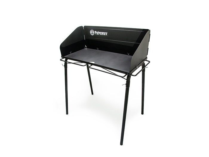 De tafel is voorzien van een mooi hoog windscherm, zodat je briketten beschermd zijn tegen de wind.